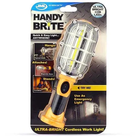 jml handy brite led light portable battery powered magnetic base cob torch ultra bright yellow black plastic durable lighting tool