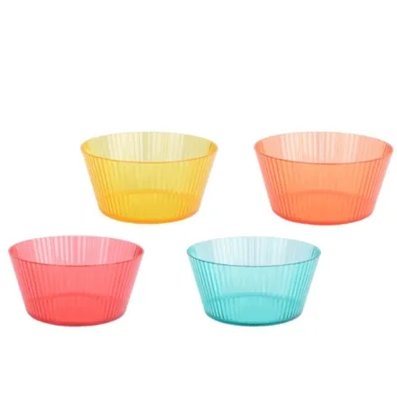 The Bowl Plastic Round Stripe Pattern set adds colour and practicality to your kitchen or table setting. Featuring a vibrant striped design, this set includes four bowls in yellow, blue, pink, and orange, making everyday meals more cheerful and fun.
