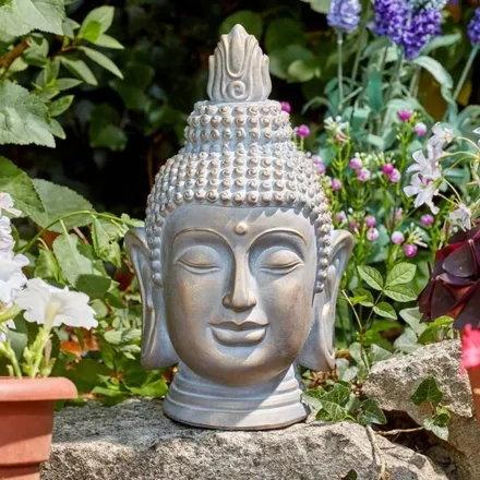 Add a sense of calm and sophistication to any setting with the Buddha Head. This elegant figurine is a beautiful finishing touch for flowerbeds, zen gardens, pathways, borders, and cosy corners, creating a tranquil focal point wherever it is placed.