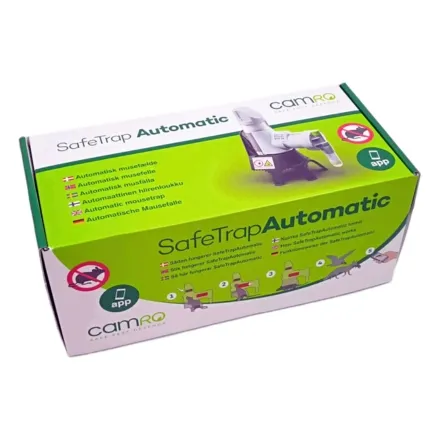 Designed with innovation and safety in mind, the Camro Safe Trap Automatic 25 Humane Rat Trap - Starter Kit features a top piece that allows light and air to enter the trap, appealing to the mouse's curious nature. The light indicates free passage, while built-in air channels ensure air circulation and help spread the scent of bait, stimulating natural behaviour and increasing trap entry likelihood. Safety is paramount with CE approval and a Safety Shield with sharp edges that discourage children and curious individuals from inserting fingers. Dead mice automatically fall down and out of the trap, allowing nature's predators (cats, foxes, birds of prey) to handle cleanup. The built-in NFC counter automatically registers each trigger with time and date, allowing you to monitor activity and track remaining CO2 shots. The CAMRO SafeTrapAutomatic app lets you read the NFC counter and gain insight into trap activity and history, including trigger count, last CO2 cartridge change, bait replacement, and more. The Camro Safe Trap Automatic 25 Humane Rat Trap - Starter Kit delivers the humane pest control, safety, and convenience that farmers and property owners expect for effective rodent management.