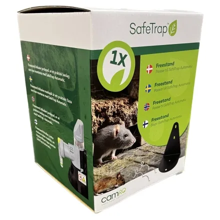 Designed for versatile placement, the Camro SafeTrap Automatic FreeStand can be used with the included ground spikes in open outdoor areas. The Freestand can also be used on porous surfaces, such as birdhouses, chicken coops, feed barrels, and similar locations. This flexibility makes it ideal for farms, homes, and commercial properties where secure trap placement is essential. Warning! Never insert your fingers into the device STA-25 when mounting the Freestand! The Camro SafeTrap Automatic FreeStand delivers the convenience and versatility that SafeTrap Automatic users expect for effective rodent control placement.