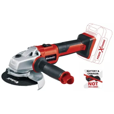 As a member of the Power X-Change family, the Einhell 18V 115mm Professional Cordless Angle Grinder (Body only) is compatible with all Power X-Change batteries (2.5Ah or higher recommended for optimum results). Features include a disk guard with quick-adjust facility, robust aluminum gearing housing, slimline design with ergonomic softgrip surfaces, and additional handle that can be fitted flexibly in 2 positions.