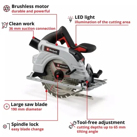 Features of the Einhell 18V 190mm Professional Cordless Circular Saw (Body only)