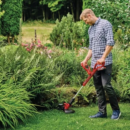 Achieve perfectly manicured lawns with the versatile Einhell 18V 30cm Cordless Lawn Trimmer. This powerful cordless garden helper tackles edges, surfaces, corners, and sides with ease, featuring a 30cm cutting width and 8,500 rpm for efficient trimming performance.