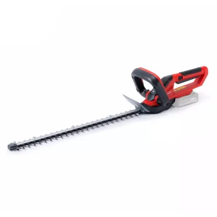 As a member of the Power X-Change family, the Einhell 18V 55cm Hedge Trimmer Solo is compatible with all Power X-Change batteries. Features include metal gearing for long service life, two-hand safety switch that stops cutters in less than 1 second, aluminum cover over cutters for protection, shock guard with wall mount holder, sturdy cutter guard for safe storage and transportation, and handy lightweight design at just 2.25kg.