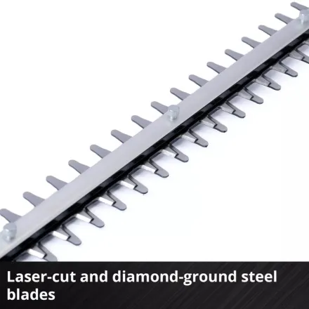 Maintain pristine hedges and shrubs with the efficient Einhell 18V 55cm Hedge Trimmer Solo. This powerful cordless hedge trimmer features laser-cut and diamond-ground steel blades that deliver clean, precise cuts with long-lasting sharpness, making it the perfect tool for large hedges and ambitious gardening projects.