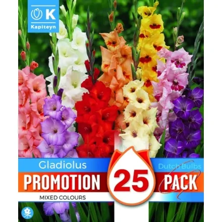 With a height and spread of 0.6 x 0.6m, Gladiolus Mixed Colours X25 12/14 is perfect for cottage gardens, borders, containers, and cut flower arrangements. Its bold colours and tall spikes make it a reliable and eye-catching choice for summer gardens.