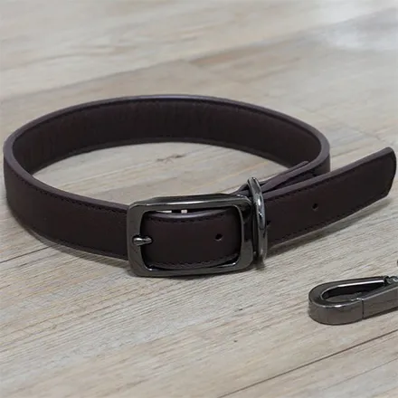 The Luxe Leather Jet WalkAbout Dog Collar features finest quality leather with superb tailoring for a lasting and beautiful accessory for your dog, incredibly strong, but supple, softening over time but remaining sturdy for a reliable collar that is comfortable for your dog to wear. This premium leather dog collar combines traditional craftsmanship with modern functionality, creating an elegant collar that develops character and becomes more comfortable with use while maintaining exceptional strength and durability.