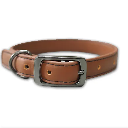 The Luxe Leather Tan WalkAbout Dog Collar features finest quality leather with superb tailoring for a lasting and beautiful accessory for your dog, incredibly strong, but supple, softening over time but remaining sturdy for a reliable collar that is comfortable for your dog to wear. This premium leather dog collar combines traditional craftsmanship with modern functionality, creating an elegant collar that develops character and becomes more comfortable with use while maintaining exceptional strength and durability.