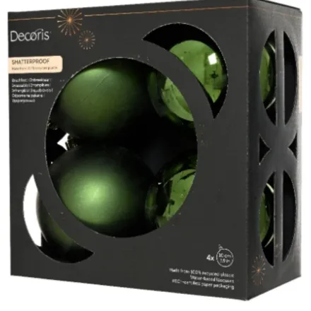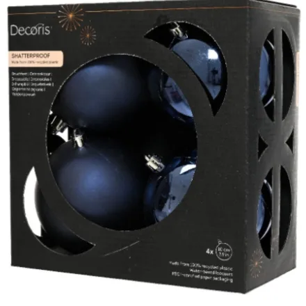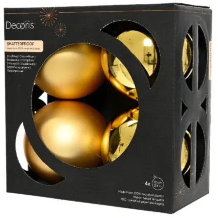 The Luxury 4pk Shatterproof 10cm Baubles are premium shatterproof baubles featuring shiny and matt finish designs. Each pack contains 4 baubles with a diameter of 10cm, perfect for decorating your Christmas tree. The Luxury 4pk Shatterproof 10cm Baubles come in plastic free packaging, making them an eco-friendly choice for festive decorations. Available in Red, Gold, Silver, Teal, Navy, and Green, these baubles are ideal for creating a beautiful and coordinated Christmas display.