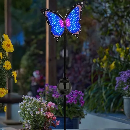 Add eye-catching movement and colour to your outdoor space with the Papillon Animated Stake. Designed to bring flashing, fluttering pizzazz to garden borders and beds, this butterfly-inspired solar light creates a lively and playful atmosphere once the sun goes down.