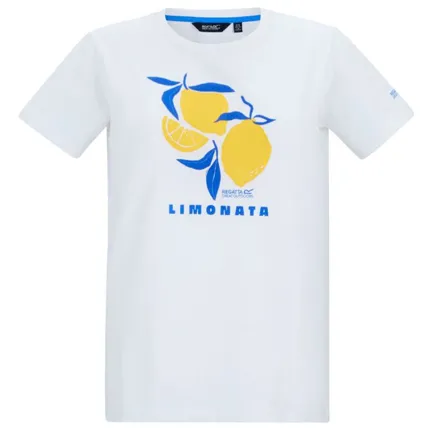 The Regatta Women's Filandra VX T-Shirt White Limonata combines style with comfort in this versatile cotton jersey top. Featuring a classic crew neck design and eye-catching graphic print, this T-shirt is crafted from 160gsm BCI cotton blend fabric, ensuring both durability and breathability for everyday wear.