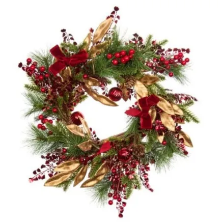 Welcome guests with the elegant Ruby Velvet Wreath 40cm, a beautifully crafted traditional wreath that adds warmth and festive charm to your home. This stunning wreath combines classic styling with luxurious ruby velvet accents, creating a sophisticated decoration that enhances any door, wall, or interior space.
