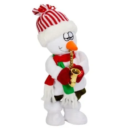 Bring festive fun to your home with the SaxSnowman. Standing 35cm tall and 15cm wide, this adorable plush snowman comes to life as he dances and grooves along to cheerful holiday tunes, adding joy and laughter to your seasonal décor.