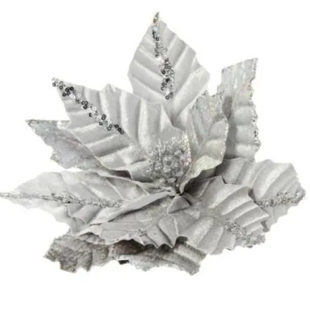 The Sensational Silvers Clip - Style 1 features exquisite floral detailing that captures the essence of seasonal beauty while maintaining a timeless elegance. Perfect for enhancing Christmas trees, wreaths, garlands, or any festive arrangement, these clips add a sophisticated metallic accent that complements both traditional and contemporary holiday décor.