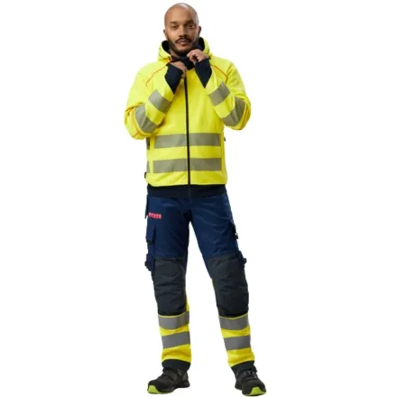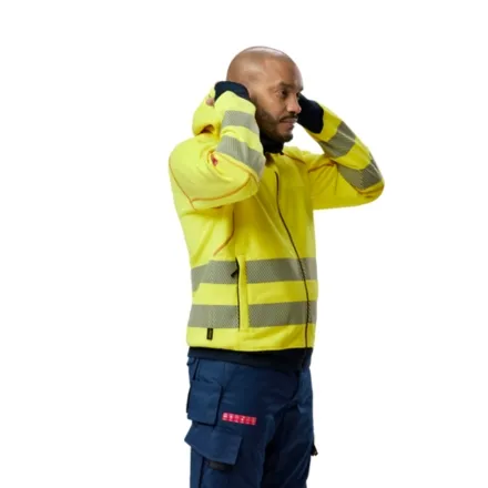 The Snickers ProtecWork Arc Full Zip Hoodie High-Vis Class 3/2 2866 is a protective high-vis class 3 full-zip hoodie with certified heat and flame protection, combined with an extremely high arc rating. Designed for high-risk environments, it offers comfort, mobility, and safety. Made from a soft and durable modacrylic/cotton blend with outstanding arc-rating and inherent flame-retardant and antistatic properties, this functional full-zip hoodie features an exceptionally high Arc-rating ELIM of 17 cal/cm² and APC2 (Box-Class). The Snickers ProtecWork Arc Full Zip Hoodie High-Vis Class 3/2 2866 is ideal for daily use in environments where electric arc and heat hazards are present, providing a reliable everyday garment with outstanding protective performance.