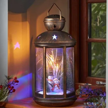 The SnowFall Lantern features a delightful rotating effect that creates a magical snowfall display inside the lantern. Standing tall at 43cm, it makes a striking centerpiece for tables, mantels, or windowsills, adding both light and festive spirit to your home.
