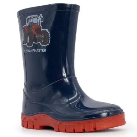 The Swampmaster Junior Tractor Wellington Boot is perfect for some puddle fun. Splash into rainy days with these wellies designed for young outdoor enthusiasts. With 100% waterproof PVC construction, durable sole, and soft textile lining, the Swampmaster Junior Tractor Wellington Boot is designed for having fun outdoors, rain or shine. Featuring tractor side detail with Swampmaster branding, these boots combine style with practical protection.