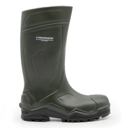 The Swampmaster Pro Defender+ S5 Safety Wellingtons is the ideal light weight wellington for mucking about. The Pro Defender Wellington has safety in mind designed with a LIGHT X composite protective toe cap, avoiding injuries at all costs. Made from lightweight, durable and tough polyurethane, the Swampmaster Safety Wellington is resistant to oils, fats, acids and organic solvents. Comfort is key when it comes to farming, and that is why the Pro Defender Wellington comes with a Comfort X shock absorbing PU footbed offering optimum comfort. The wellington has a self-cleaning outsole tread design, along with the easy-off heel feature. The Swampmaster Wellington is cold resistant up to -40 ̊C, ready to bear all harsh conditions. The LIGHT X composite anti-penetration midsole is an added feature of the Pro Defender+ S5 offering utmost comfort to the farmer.