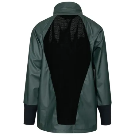 Designed with dairy farming in mind, the Swampmaster Stormgear Waterproof Dairy Smock Long Sleeve Green features 4-way stretch fabric for great freedom of movement, anti-fungal treatment, zip neck and high collar for great protection, and fully waterproof sealed and welded seams. The mesh back is not waterproof, and allows you to stay cool and comfortable even in highly exertive tasks in stuffy environments. Available in 3 size options, the smock includes neoprene cuffs that provide a comfortable seal at the wrist, zip neck for protection and easy fitting, shock cord at waistline for a great fit, and double front pockets with flaps. Washable fabric means you can at least start the day clean, and the garment is treated with anti-fungal fabric treatment for improved hygiene. This garment fabric is Lab tested and treated for reduction / neutralisation of Staphylococcus Aureus, Escherichia Coli and Klebsiella Pneumoniae, which are among the prevalent species of bacteria that induce clinical mastitis and other infections. The Swampmaster Stormgear Waterproof Dairy Smock Long Sleeve Green delivers the protection, comfort, and hygiene that dairy farmers expect for their demanding work environment.