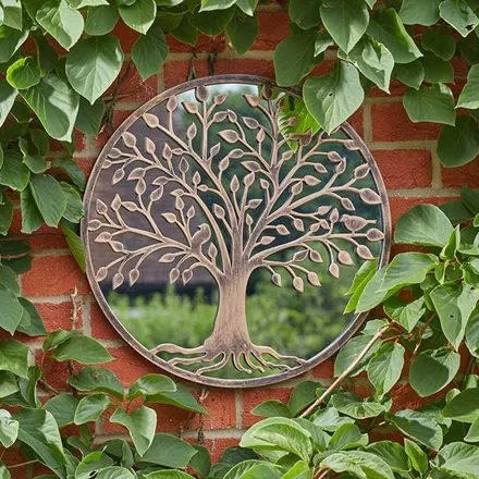 The TreeFlection Garden Mirror - Coppergris is a stylish decorative mirror designed to enhance both indoor and outdoor spaces. Featuring an intricate Tree of Life design, it adds depth, light, and visual interest to gardens, patios, conservatories, or interior walls.