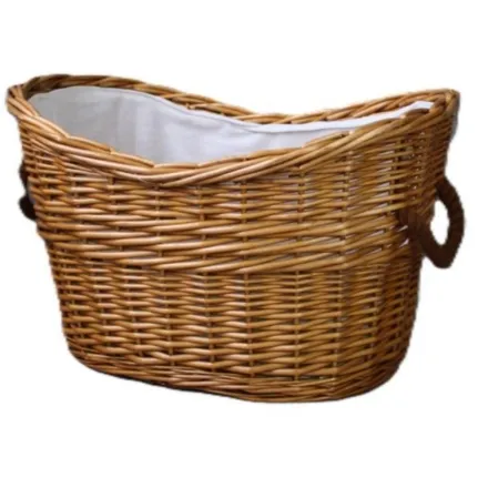 Featuring sturdy rope handles for easy portability and a soft fabric liner for added protection, the Wicker Basket Oval Natural is as versatile as it is elegant. With generous dimensions, it provides ample room for toys, throws, clothing, or decorative use in living rooms, bedrooms, or utility spaces.