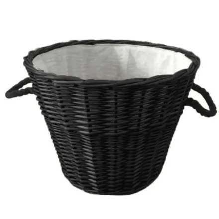 The Wicker Basket Round Black combines style with functionality, featuring sturdy rope handles for comfortable carrying and a removable fabric liner for added practicality. The liner protects delicate items and makes cleaning effortless, while the durable wicker construction ensures long-lasting use.