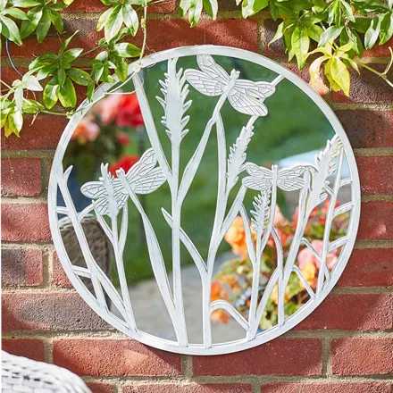 The WingFlection Garden Mirror - Silvergris is a stylish decorative mirror designed to enhance both indoor and outdoor spaces. Featuring an intricate dragonfly design, it adds depth, light, and visual interest to gardens, patios, conservatories, or interior walls.
